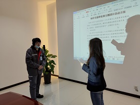 活動中,兩兩分為一組,一人陳述總書記在二十大開幕式上的重要講話和共青團(tuán)建團(tuán)100周年大會上的重要講話中的金句,另外一個人戴著耳機看著對面那個人的口型去描述,現(xiàn)場氣氛歡快熱烈。