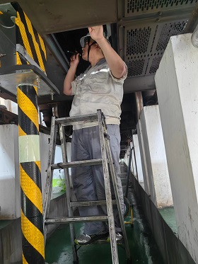 駐鄭州東售后服務(wù)人員趙軍朋不畏酷熱,定期對(duì)空調(diào)進(jìn)行點(diǎn)檢,對(duì)室外風(fēng)機(jī)狀態(tài)進(jìn)行確認(rèn),為旅客營造舒適出行體驗(yàn)貢獻(xiàn)微薄之力。
