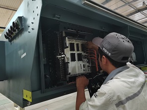 為了保障車輛空調(diào)穩(wěn)定運(yùn)行,駐北京南售后服務(wù)人員李佩俊正在進(jìn)行空調(diào)變流器改造,長編的動(dòng)臥車組空調(diào)數(shù)量多,檢修庫內(nèi)溫度高,加之北京近期持續(xù)40°高溫天氣,李佩俊克服了種種困難,保障改造順利完成。