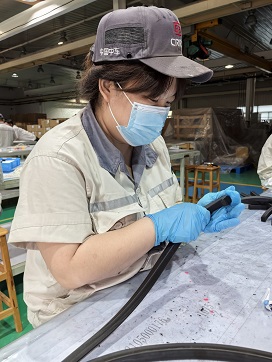 5月28日,捷通公司開(kāi)展了第三期勞動(dòng)競(jìng)賽。本次勞動(dòng)競(jìng)賽主要以空調(diào)橡膠條粘接作為參賽項(xiàng)目。賽前,作業(yè)人員對(duì)工具進(jìn)行反復(fù)確認(rèn),對(duì)材料進(jìn)行核對(duì),確保比賽過(guò)程萬(wàn)無(wú)一失。裁判組講解規(guī)則后,宣布比賽開(kāi)始,大家立即投入比賽中。